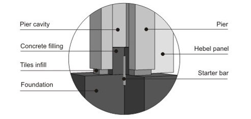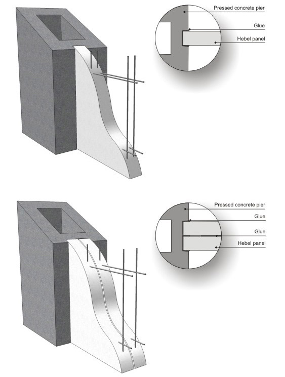 Close (secure) panels with another pier and fill the gaps between panels and pier slots. (using Hebel glue) |